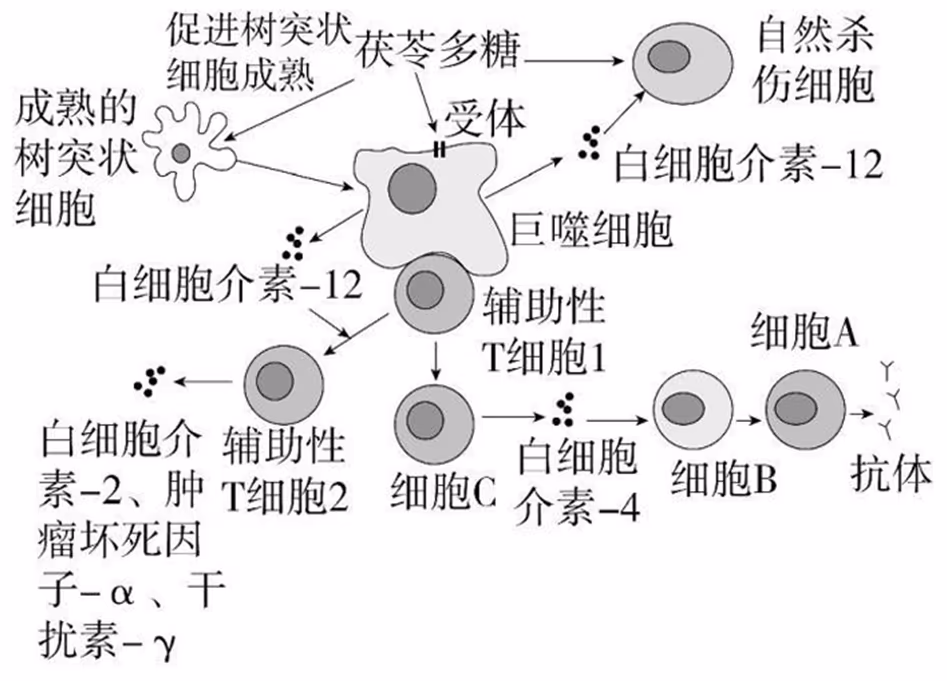 白细胞介素:在白细胞之间传递信息,种类繁多,功能有如促进 T 细胞增殖、促进 B 细胞产生抗体等。