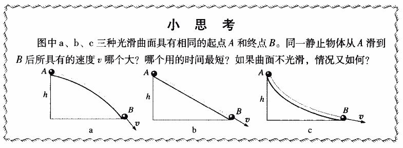 质点自半径为 $R$ 的空心球(对于平面而言是圆环)的最高点由静止开始无摩擦地沿任一弦下滑至球面(或圆环),所需时间相等,且等于:
