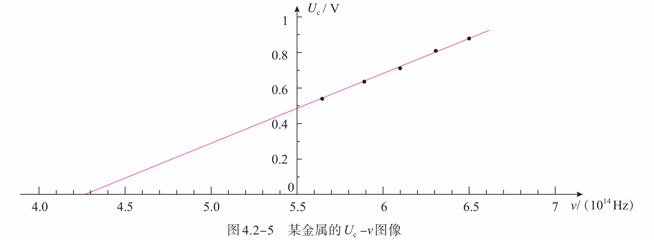 对于确定的金属,其逸出功 $W_0$ 是确定的,电子电荷 $e$ 和普朗克常量 $h$ 都是常量。上式中的遏止电压 $U_c$ 与光的频率 $nu$ 是线性关系,$U_c-\nu$ 图像是一条斜率为 $dfrac{h}{e}$ 的直线。