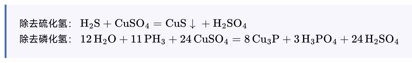 碳化钙是电石的主要成分,反应后可能有 $ce{H2S},\ce{PH3}$ 等杂志,可用 $ce{CuSO4}$ 溶液除去。