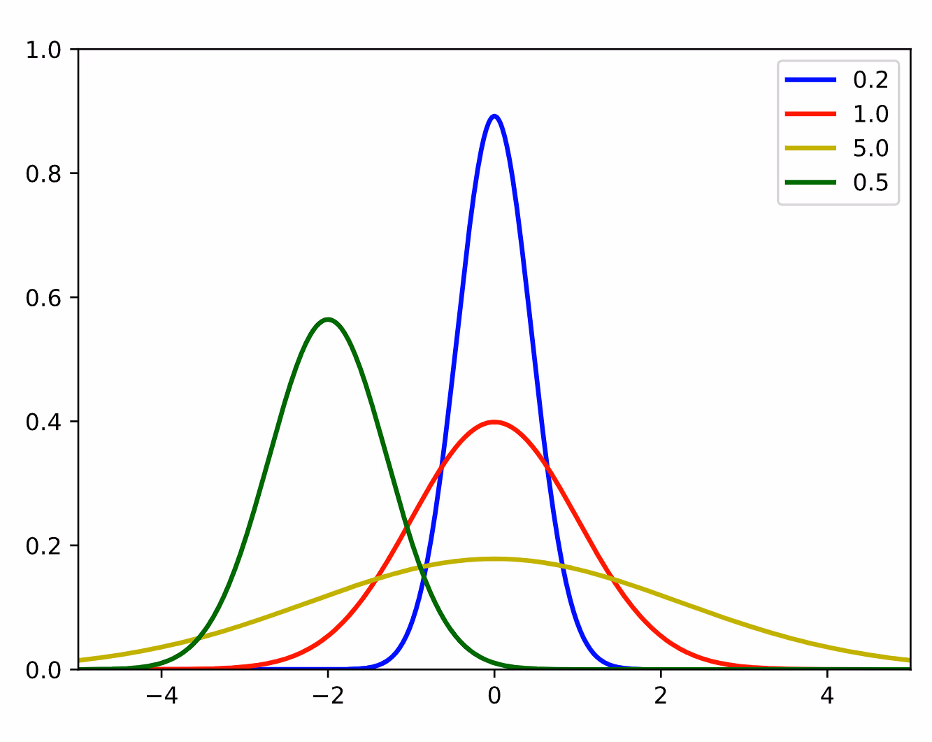 正态分布的概率密度函数中以平均值 $mu$、标准差 $sigma$ 为参数,正态分布的数学期望值或期望 $mu$ ,可解释为位置参数,决定了分布的位置;其方差 $sigma ^{2}$ 的平方根或标准差 $sigma$ 可解释尺度参数,决定了分布的幅度。