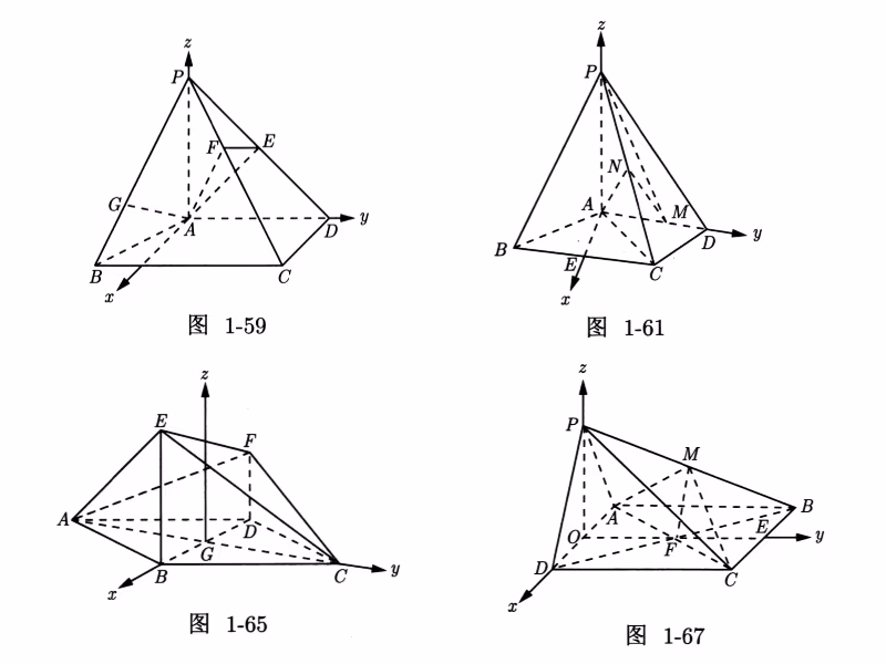 建系的基本规则:以图形底面为 $x,y$ 平面,$y$ 轴向上延伸,尽可能的(优先把底面上的)把点放在坐标轴上、尽可能的(把底面的边线)轮廓线放在坐标轴上。