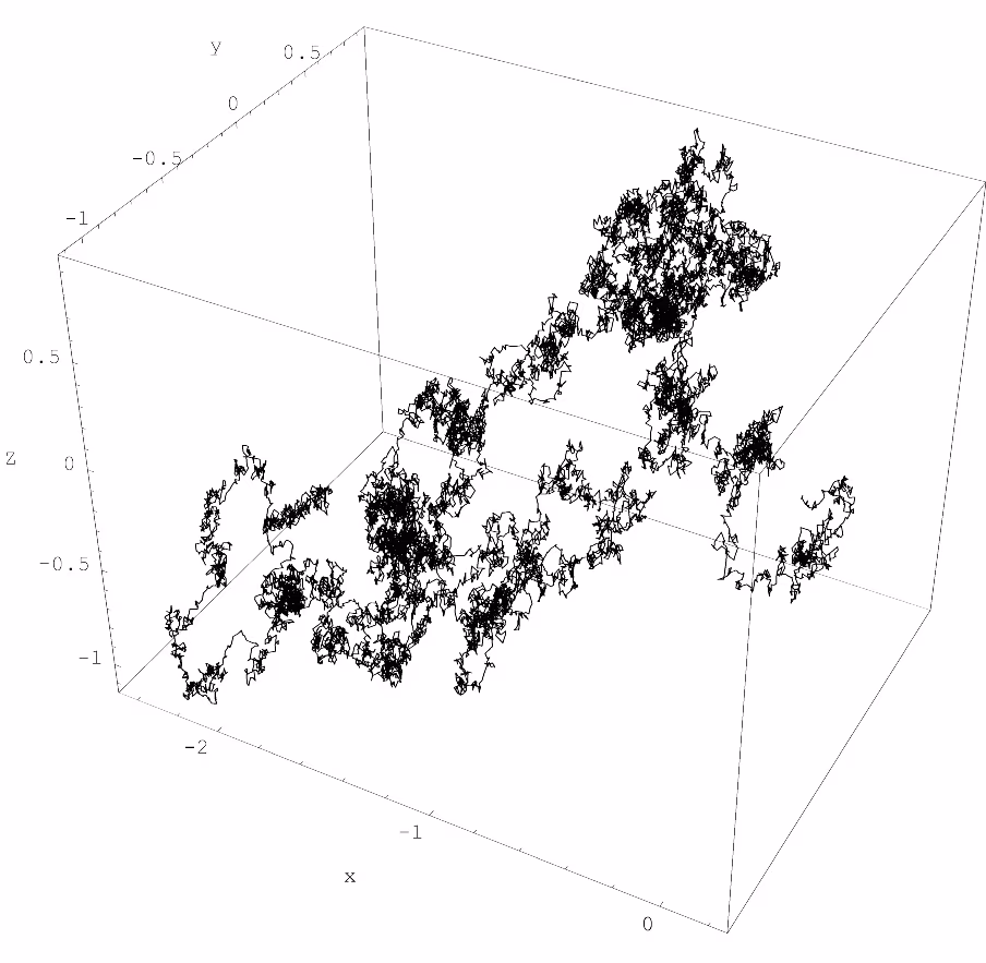 - 粒子的运动由平移及转动所构成,显得非常没有规则,而且其运动轨迹极其曲折,几乎是"处处没有切线"的。